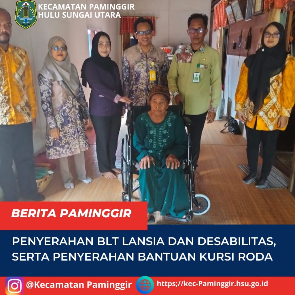 Paminggir–Kamis, 19 Desember 2024 Kasi Pelayanan, Perekonomian dan Kesejahteraan Sosial Kecamatan Paminggir Bapak Khairani, S.Ag Melaksanakan Kegiatan Pendampingan Penyaluran Bantuan Langsung Tunai (BLT) kepada Lansia dan Disabitas yang ada di desa Pal Batu, Tampakang, Bararawa, Sapala, Ambahai, Paminggir Seberang dan Paminggir. Pada Kegiatan ini juga dilakukan pembagian Kursi Roda di Desa Paminggir.Kegiatan ini dilaksanakan oleh Dinas Sosial Hulu Sungai Utara.
