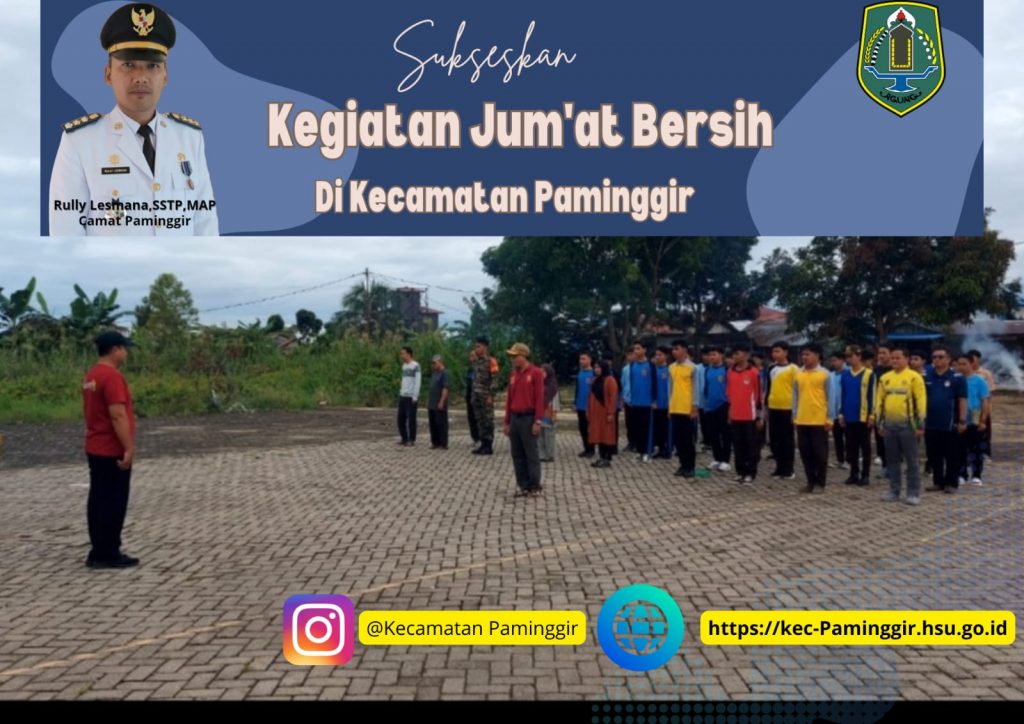 Paminggir- Jum’at 7 Februari 2025 dilaksanakan Gerakan Jum’at Bersih di lingkungan kecamatan paminggir. Kegiatan ini telah berlangsung setiap hari jum’at yang menjadi kegiatan rutin di kantor kecamatan Paminggir sesuai dengan surat edaran Bupati Hulu Sungai Utara tentang Gerakan Jum’at Bersih