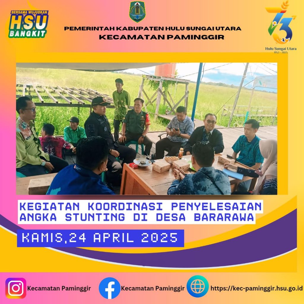 Paminggir, Kamis 24 April 2025 dilaksanakan kegiatan koordinasi berbagai instansi di wilayah kecamatan Paminggir dalam rangka menekan angka stunting di wilayah kecamatan Paminggir ter khusus di Desa Bararawa yang mana sampai saat ini di desa Bararawa merupakan desa angka tertinggi stunting di Kecamatan Paminggir.