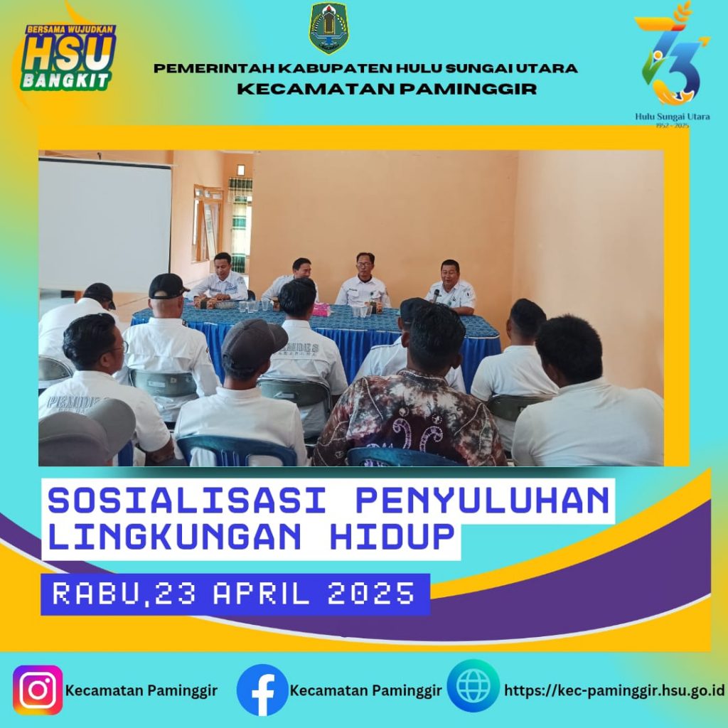 Paminggir, Rabu 23 April 2025 Dinas Perkim-LH Kabupaten Hulu Sungai Utara melaksanakan Sosialisasi mengenai lingkungan hidup yang mana dari tujuh Desa di Wilayah Kecamatan Paminggir telah terbentuk Bank Sampah.
