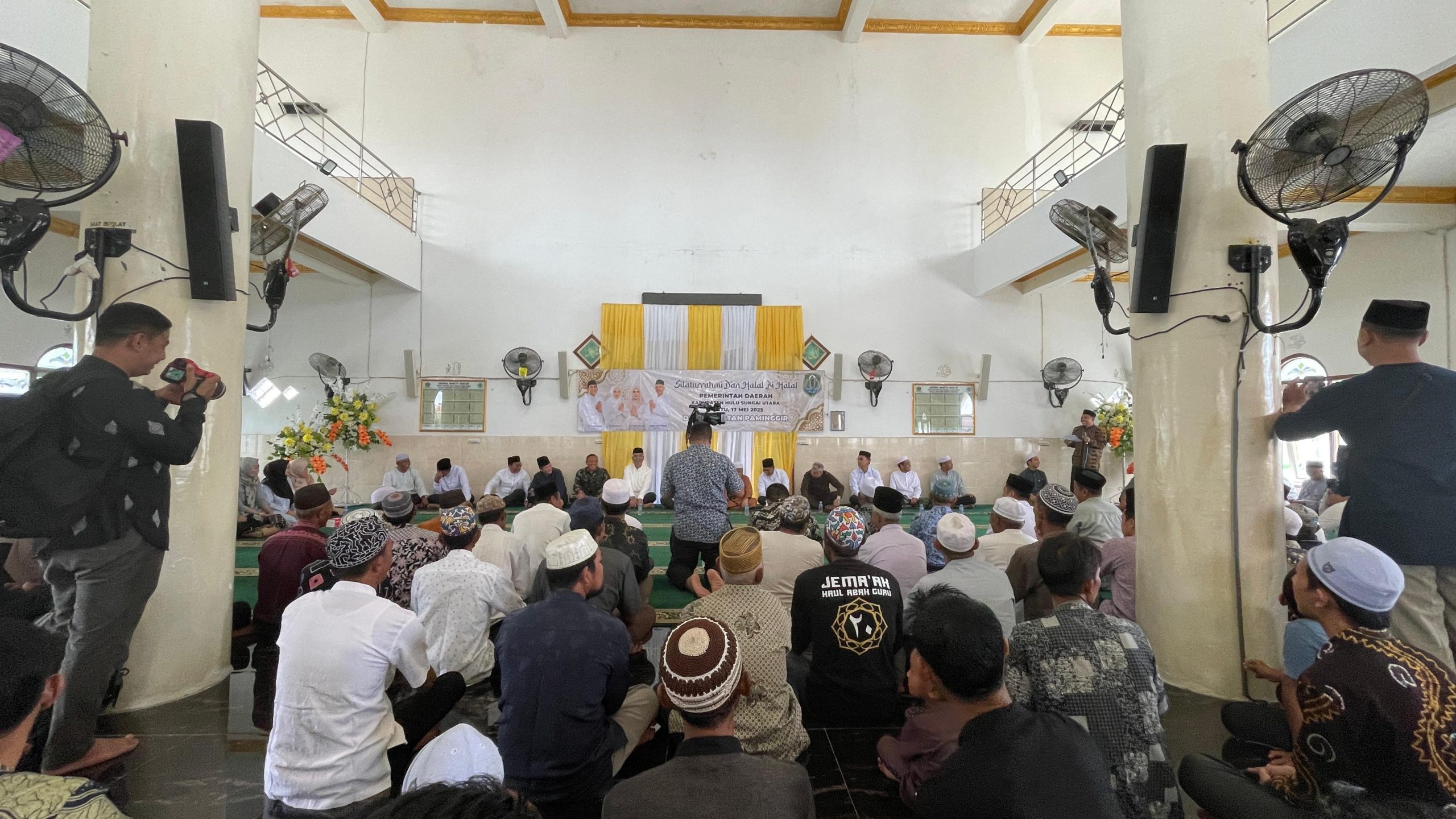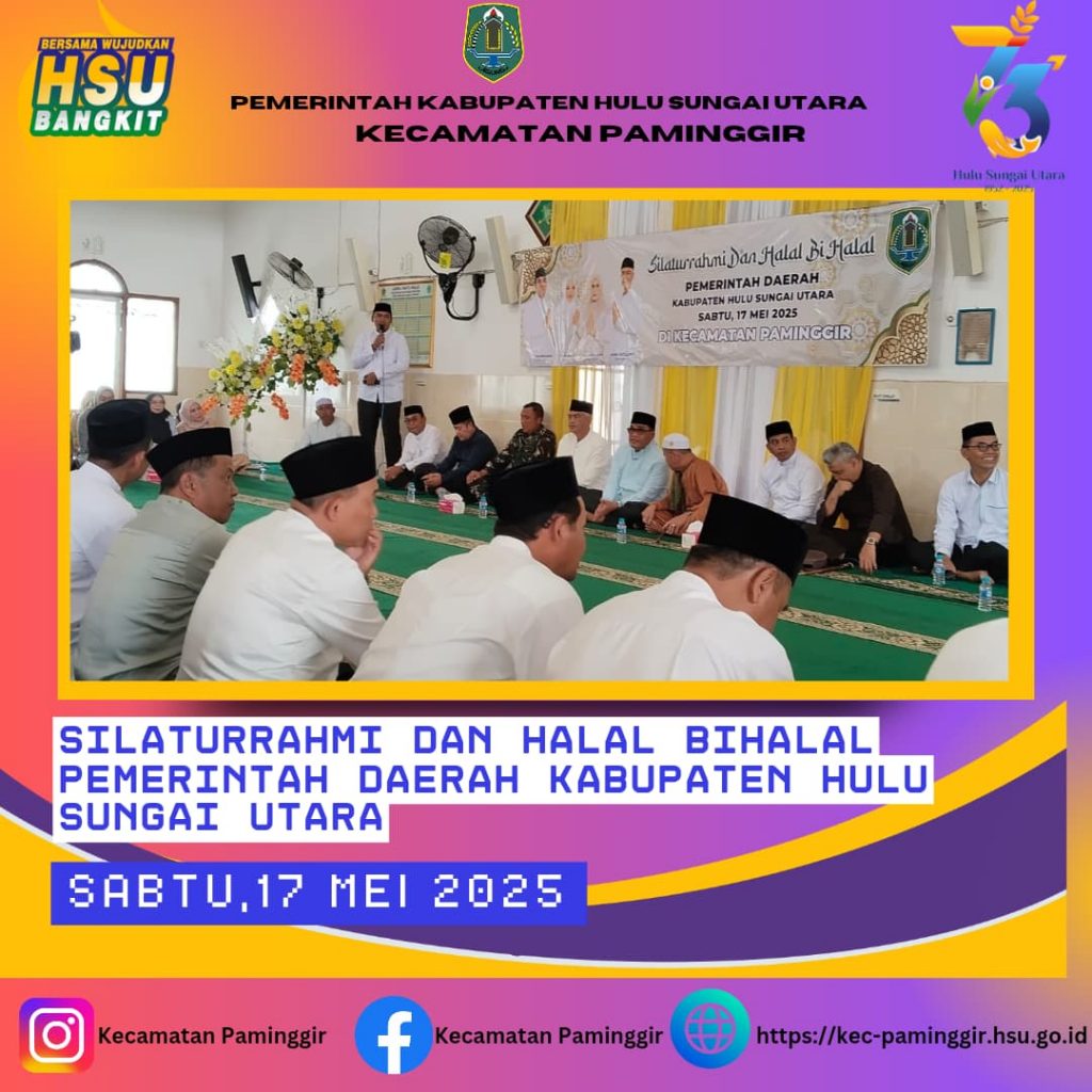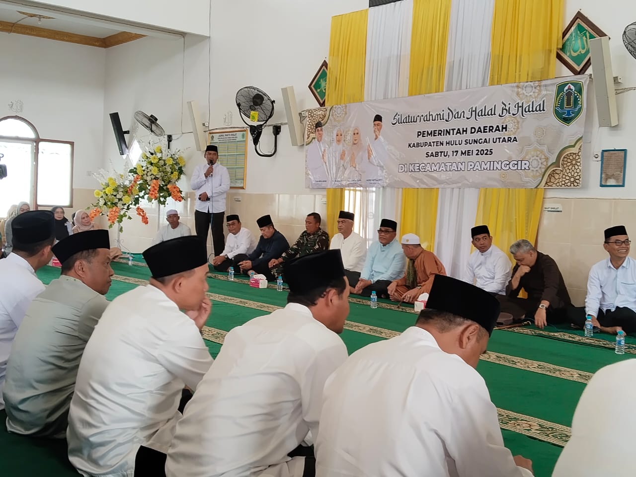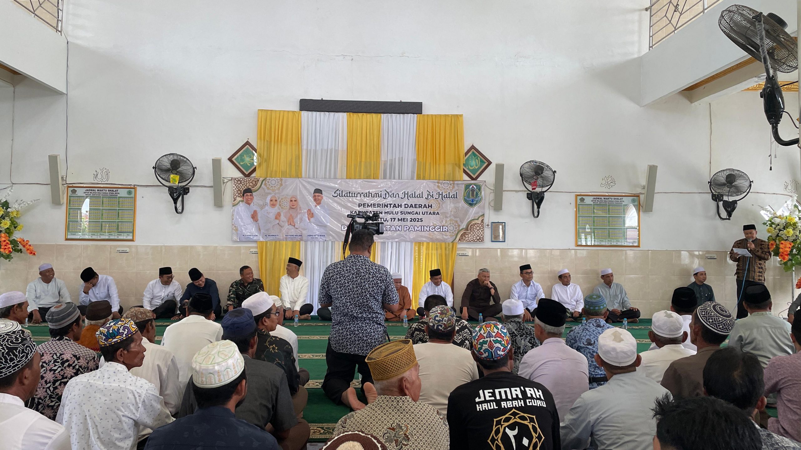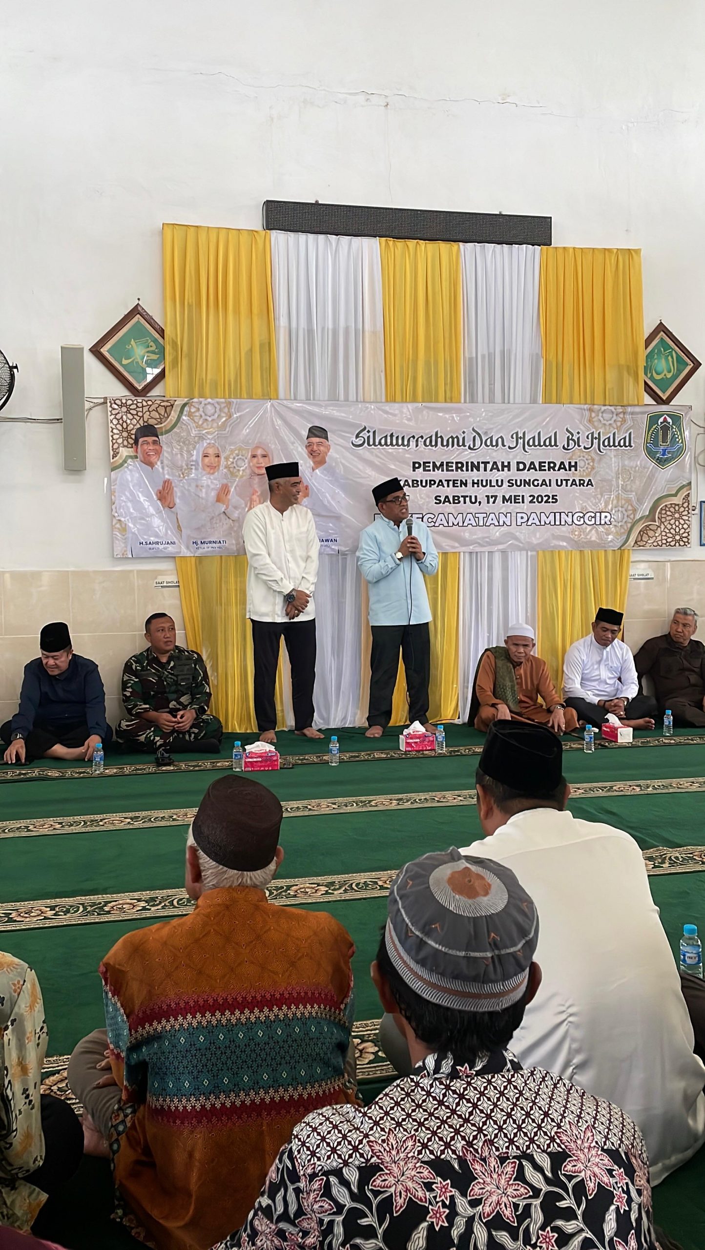 Paminggir-   bertempat di Mesjid Jamiatushabirin dilaksanakan kegiatan Halal Bihalal bersama Bupati dan Wakil Bupati Kabupaten Hulu Sungai Utara (HSU), Sahrujani dan Hero Setiawan, pejabat dan unsur forkopimda, hadir dalam kegiatan halal bihalal di Kecamatan Paminggir, Sabtu (17/5/2025).