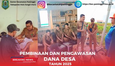 Februari 17, 2025 PEMBINAAN DAN MONITORING PEMBANGUNAN FISIK DESA Uncategorized Leave a Comment 35 Views Paminggir_ Dalam rangka melaksanakan Surat Edaran Bupati Hulu Sungai Utara tentang Mekanisme Pencairan Dana Anggaran Pendapatan dan Belanja Desa...
